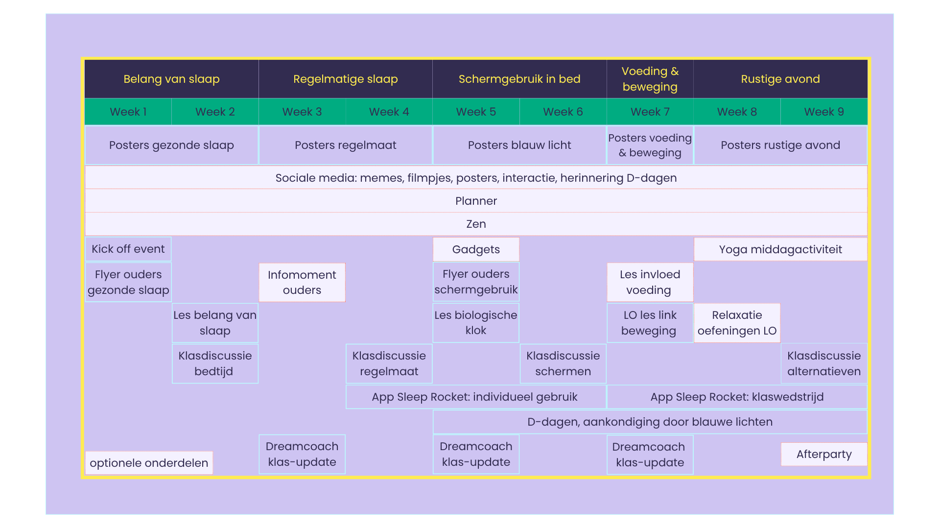 De wetenschappelijk onderbouwde interventie loopt over 9 weken en is opgebouwd rond 5 thema’s, van het belang van slaap tot schermgebruik, beweging en voeding.